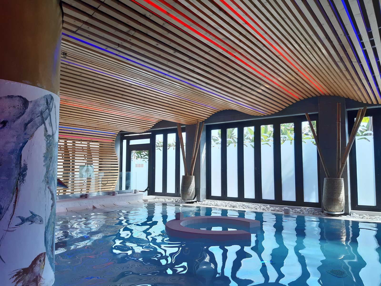 Para este spa en Maspalomas se concibe un espacio dé bienestar donde la arquitectura fluye como el agua. Un manto continuo de lamas de madera recorre techos y paredes, ondulándose suavemente como olas, envolviendo al usuario y guiándolo a través de una experiencia de calma y recogimiento.